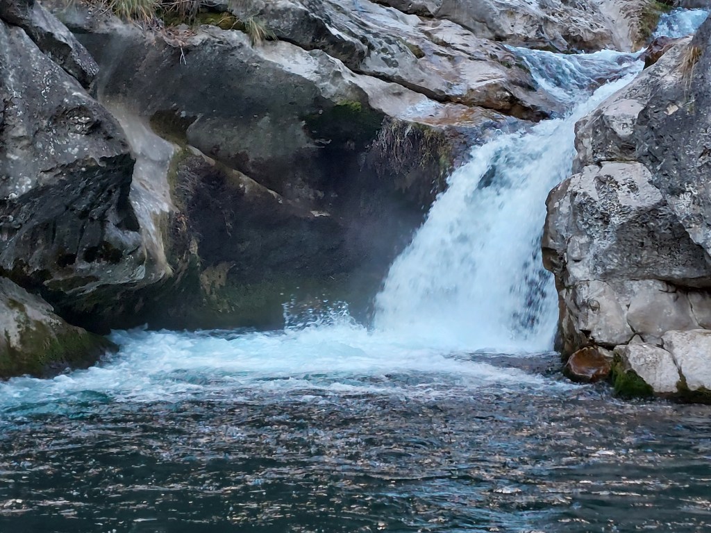 This river, Le Loup, carries a story.  Straight from the lower Alps, the snow run-off brings the cool determination of its journey through ancient hilltop villages and on to the Mediterranean sea.  Undeterred by steep drops and large boulders, Le Loup gathers its strength and winds along with fervor.  Often violent, always dramatic, each segment is a sight to behold.